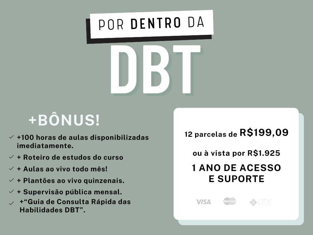 É importante conseguir tirar, por um tempo, os “óculos” da sua abordagem para perceber o que a DBT traz de novo e diferente. Em pouco tempo de aula você começa a organizar o caso com outra lente.